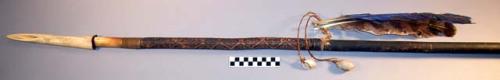 Lança Lanças Acessar item no Acervo do museu de origemDocumentação Em “Termos de Uso”, disponíveis em (https://www.peabody.harvard.edu/node/778) explicita-se que o website é mantido pelo Peabody Museum of Archaeology and Ethnology, da Universidade de Harvard, que pode alterá-los a qualquer momento sem aviso prévio. O uso do website deve estar em concordância com: 1. O Site e grande parte do texto, imagens, gráficos, clipes de áudio e vídeo, informações e outros conteúdos do Site (coletivamente, o “Conteúdo”) são protegidos por direitos autorais, marcas registradas e outras leis. 2. O Conteúdo é disponibilizado somente para seu uso pessoal limitado, não comercial para fins educacionais ou acadêmicos, ou para outro uso justo na extensão permitida pela lei de direitos autorais dos Estados Unidos. A menos que especificado de outra forma no Site, você pode empregar as funções normais de seu navegador para baixar e imprimir uma única cópia de arquivos de Conteúdo individuais para tal uso, desde que você mantenha todos os direitos autorais e outros avisos de propriedade associados ao Conteúdo. Você deve citar o autor/artista e a fonte do Conteúdo como se fosse conteúdo de qualquer trabalho impresso, e a citação deve incluir a URL www.peabody.harvard.edu; 3. Concedem a permissão limitada acima sob os direitos autorais que possuem. Os direitos autorais e outros direitos sobre o Conteúdo também podem ser detidos por outros indivíduos ou entidades, incluindo artistas e outros detentores de direitos sobre as coleções do Museu Peabody reproduzidas no Site; 4. Usos Proibidos. É proibido copiar, exibir, publicar, distribuir, transmitir, modificar, executar ou utilizar ou explorar qualquer Conteúdo protegido no Site para qualquer propósito comercial ou com o propósito de torná-lo publicamente disponível. É proibido incluir qualquer Conteúdo protegido em um banco de dados, website ou recurso eletrônico, e de fazer qualquer outro uso do Conteúdo protegido que não seja expressamente permitido pela Seção 2; 5. Para solicitar permissão, sob direitos controlados por nós, para qualquer uso de outra forma proibido, favor entrar em contato com o Peabody Museum of Archaeology and Ethnology’s Office of Rights and ReproductionsPovo Indígena Karajá Autodenominação: Iny Iny Karaja Outros nomes para o povo: Carajás Localização: America do SulBrasilGoiás (GO)Mato Grosso (MT)Pará (PA)Tocantins (TO)Museu Peabody Museum (Cambridge, EUA) Localização: América do NorteCambridgeEstados Unidos Número de tombo: 18-12-30/F158 Número anterior: 18-12-30/F158Tipo de Acervo: EtnológicoCaracterísticas Dimensões: 219 x 15,3 x 3,6 cm 86 1,4 x 6 x 1 7,16 cm Quantidade de componentes: 1 Material/Suporte: Madeira, osso, fibra, concha, pena, cordaTesauro (FUNAI) Artefatos: Arma de arremessoEquipamento para caça, pesca, ataque/defesaLança Matérias Primas: ConchaFibra VegetalMadeiraOssoPenaProduto de origem AnimalProduto de origem MineralProduto de origem VegetalProveniência Coleta: América do Sul, BrasilHistórico Cedente: Frederick Braun Coletor:Anônimo Forma de Aquisição: : Selecione Exportar ObraLanças