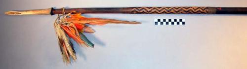 Lança Haste de lança com ponta de osso faltando Acessar item no Acervo do museu de origemDocumentação Em “Termos de Uso”, disponíveis em (https://www.peabody.harvard.edu/node/778) explicita-se que o website é mantido pelo Peabody Museum of Archaeology and Ethnology, da Universidade de Harvard, que pode alterá-los a qualquer momento sem aviso prévio. O uso do website deve estar em concordância com: 1. O Site e grande parte do texto, imagens, gráficos, clipes de áudio e vídeo, informações e outros conteúdos do Site (coletivamente, o “Conteúdo”) são protegidos por direitos autorais, marcas registradas e outras leis. 2. O Conteúdo é disponibilizado somente para seu uso pessoal limitado, não comercial para fins educacionais ou acadêmicos, ou para outro uso justo na extensão permitida pela lei de direitos autorais dos Estados Unidos. A menos que especificado de outra forma no Site, você pode empregar as funções normais de seu navegador para baixar e imprimir uma única cópia de arquivos de Conteúdo individuais para tal uso, desde que você mantenha todos os direitos autorais e outros avisos de propriedade associados ao Conteúdo. Você deve citar o autor/artista e a fonte do Conteúdo como se fosse conteúdo de qualquer trabalho impresso, e a citação deve incluir a URL www.peabody.harvard.edu; 3. Concedem a permissão limitada acima sob os direitos autorais que possuem. Os direitos autorais e outros direitos sobre o Conteúdo também podem ser detidos por outros indivíduos ou entidades, incluindo artistas e outros detentores de direitos sobre as coleções do Museu Peabody reproduzidas no Site; 4. Usos Proibidos. É proibido copiar, exibir, publicar, distribuir, transmitir, modificar, executar ou utilizar ou explorar qualquer Conteúdo protegido no Site para qualquer propósito comercial ou com o propósito de torná-lo publicamente disponível. É proibido incluir qualquer Conteúdo protegido em um banco de dados, website ou recurso eletrônico, e de fazer qualquer outro uso do Conteúdo protegido que não seja expressamente permitido pela Seção 2; 5. Para solicitar permissão, sob direitos controlados por nós, para qualquer uso de outra forma proibido, favor entrar em contato com o Peabody Museum of Archaeology and Ethnology’s Office of Rights and ReproductionsPovo Indígena Karajá Autodenominação: Iny Iny Karaja Outros nomes para o povo: Carajás Localização: America do SulBrasilGoiás (GO)Mato Grosso (MT)Pará (PA)Tocantins (TO)Museu Peabody Museum (Cambridge, EUA) Localização: América do NorteCambridgeEstados Unidos Número de tombo: 18-12-30/F156 Número anterior: 18-12-30/F156Tipo de Acervo: EtnológicoCaracterísticas Dimensões: 184 x 19 x 3,1 cm 72 7,16 x 7 1,2 x 1 1,4 cm Quantidade de componentes: 1 Material/Suporte: Madeira, osso, fibra, penaTesauro (FUNAI) Artefatos: Arma de arremessoEquipamento para caça, pesca, ataque/defesaLança Matérias Primas: Fibra VegetalMadeiraOssoPenaProduto de origem AnimalProduto de origem VegetalProveniência Coleta: América do Sul, BrasilHistórico Cedente: Anônimo Coletor:Anônimo Forma de Aquisição: : Selecione Exportar ObraHaste de lança com ponta de osso faltando