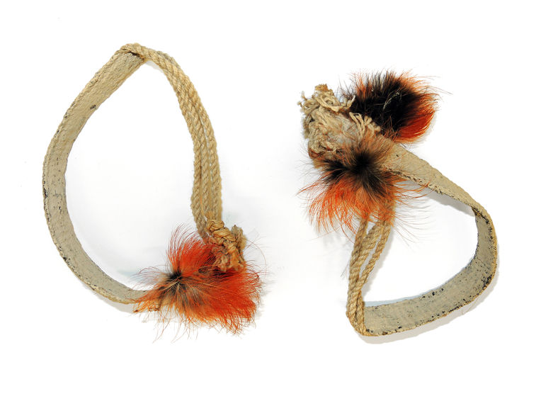 Função: Para pernas e braços, usados hoje permanentemente por mulheres e meninas, às vezes substituídos por pedaços de plástico. Este par, de cor branca: usado por mulheres
