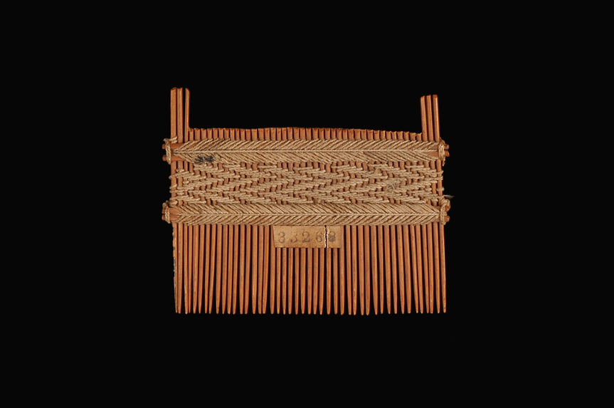 Pente de madeira, armação com fio.