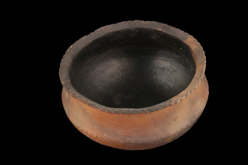 “Cerâmica com borda serrilhada, interior preto, sem tinta”.