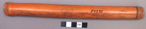 Recipiente Caixa e pincéis de bambu para pintura facial e corporal Acessar item no Acervo do museu de origemDocumentação Em “Termos de Uso”, disponíveis em (https://www.peabody.harvard.edu/node/778) explicita-se que o website é mantido pelo Peabody Museum of Archaeology and Ethnology, da Universidade de Harvard, que pode alterá-los a qualquer momento sem aviso prévio. O uso do website deve estar em concordância com: 1. O Site e grande parte do texto, imagens, gráficos, clipes de áudio e vídeo, informações e outros conteúdos do Site (coletivamente, o “Conteúdo”) são protegidos por direitos autorais, marcas registradas e outras leis. 2. O Conteúdo é disponibilizado somente para seu uso pessoal limitado, não comercial para fins educacionais ou acadêmicos, ou para outro uso justo na extensão permitida pela lei de direitos autorais dos Estados Unidos. A menos que especificado de outra forma no Site, você pode empregar as funções normais de seu navegador para baixar e imprimir uma única cópia de arquivos de Conteúdo individuais para tal uso, desde que você mantenha todos os direitos autorais e outros avisos de propriedade associados ao Conteúdo. Você deve citar o autor/artista e a fonte do Conteúdo como se fosse conteúdo de qualquer trabalho impresso, e a citação deve incluir a URL www.peabody.harvard.edu; 3. Concedem a permissão limitada acima sob os direitos autorais que possuem. Os direitos autorais e outros direitos sobre o Conteúdo também podem ser detidos por outros indivíduos ou entidades, incluindo artistas e outros detentores de direitos sobre as coleções do Museu Peabody reproduzidas no Site; 4. Usos Proibidos. É proibido copiar, exibir, publicar, distribuir, transmitir, modificar, executar ou utilizar ou explorar qualquer Conteúdo protegido no Site para qualquer propósito comercial ou com o propósito de torná-lo publicamente disponível. É proibido incluir qualquer Conteúdo protegido em um banco de dados, website ou recurso eletrônico, e de fazer qualquer outro uso do Conteúdo protegido que não seja expressamente permitido pela Seção 2; 5. Para solicitar permissão, sob direitos controlados por nós, para qualquer uso de outra forma proibido, favor entrar em contato com o Peabody Museum of Archaeology and Ethnology’s Office of Rights and ReproductionsPovo Indígena Kadiwéu Autodenominação: Guakuru Outros nomes para o povo: Guakuru Localização: America do SulBrasilMato Grosso do Sul (MS)Museu Peabody Museum (Cambridge, EUA) Localização: América do NorteCambridgeEstados Unidos Número de tombo: 89-39-30/54279 Número anterior: 89-39-30/54279Tipo de Acervo: EtnológicoCaracterísticas Dimensões: 25,5 x 2,5 x 2,6 cm 10 1,16 x 1 x 1 cm Quantidade de componentes: 1 Material/Suporte: BambuTesauro (FUNAI) Artefatos: Equipamento para uso pessoalEstojo Matérias Primas: MadeiraProduto de origem VegetalProveniência Coleta: América do Sul, BrasilHistórico Cedente: Anônimo Coletor:Anônimo Forma de Aquisição: : Selecione Exportar ObraCaixa e pincéis de bambu para pintura facial e corporal