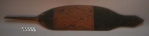 Remo Remo – cabo queimado Acessar item no Acervo do museu de origemDocumentação Em “Termos de Uso”, disponíveis em (https://www.peabody.harvard.edu/node/778) explicita-se que o website é mantido pelo Peabody Museum of Archaeology and Ethnology, da Universidade de Harvard, que pode alterá-los a qualquer momento sem aviso prévio. O uso do website deve estar em concordância com: 1. O Site e grande parte do texto, imagens, gráficos, clipes de áudio e vídeo, informações e outros conteúdos do Site (coletivamente, o “Conteúdo”) são protegidos por direitos autorais, marcas registradas e outras leis. 2. O Conteúdo é disponibilizado somente para seu uso pessoal limitado, não comercial para fins educacionais ou acadêmicos, ou para outro uso justo na extensão permitida pela lei de direitos autorais dos Estados Unidos. A menos que especificado de outra forma no Site, você pode empregar as funções normais de seu navegador para baixar e imprimir uma única cópia de arquivos de Conteúdo individuais para tal uso, desde que você mantenha todos os direitos autorais e outros avisos de propriedade associados ao Conteúdo. Você deve citar o autor/artista e a fonte do Conteúdo como se fosse conteúdo de qualquer trabalho impresso, e a citação deve incluir a URL www.peabody.harvard.edu; 3. Concedem a permissão limitada acima sob os direitos autorais que possuem. Os direitos autorais e outros direitos sobre o Conteúdo também podem ser detidos por outros indivíduos ou entidades, incluindo artistas e outros detentores de direitos sobre as coleções do Museu Peabody reproduzidas no Site; 4. Usos Proibidos. É proibido copiar, exibir, publicar, distribuir, transmitir, modificar, executar ou utilizar ou explorar qualquer Conteúdo protegido no Site para qualquer propósito comercial ou com o propósito de torná-lo publicamente disponível. É proibido incluir qualquer Conteúdo protegido em um banco de dados, website ou recurso eletrônico, e de fazer qualquer outro uso do Conteúdo protegido que não seja expressamente permitido pela Seção 2; 5. Para solicitar permissão, sob direitos controlados por nós, para qualquer uso de outra forma proibido, favor entrar em contato com o Peabody Museum of Archaeology and Ethnology’s Office of Rights and ReproductionsPovo Indígena Karajá Autodenominação: Iny Iny Karaja Outros nomes para o povo: Carajás Localização: America do SulBrasilGoiás (GO)Mato Grosso (MT)Pará (PA)Tocantins (TO)Museu Peabody Museum (Cambridge, EUA) Localização: América do NorteCambridgeEstados Unidos Número de tombo: 18-12-30/F125 Número anterior: 18-12-30/F125Tipo de Acervo: EtnológicoCaracterísticas Dimensões: 100 x 18 x 1 cm 39 3,8 x 7 1,16 x 3,8 cm Quantidade de componentes: 1 Material/Suporte: Madeira, pigmentoTesauro (FUNAI) Artefatos: Compasso de remoEquipamento para navegaçãoEquipamento para trabalhoRemo Matérias Primas: MadeiraProduto de origem VegetalTinta de jenipapoProveniência Coleta: América do Sul, BrasilHistórico Cedente: Frederick Braun Coletor:Anônimo Forma de Aquisição: : Selecione Exportar ObraRemo – cabo queimado