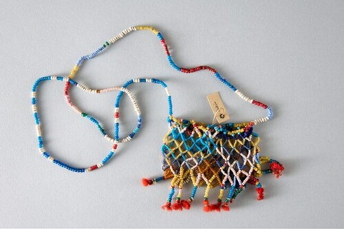 Material/Suporte: Conta de vidro, lã, corda