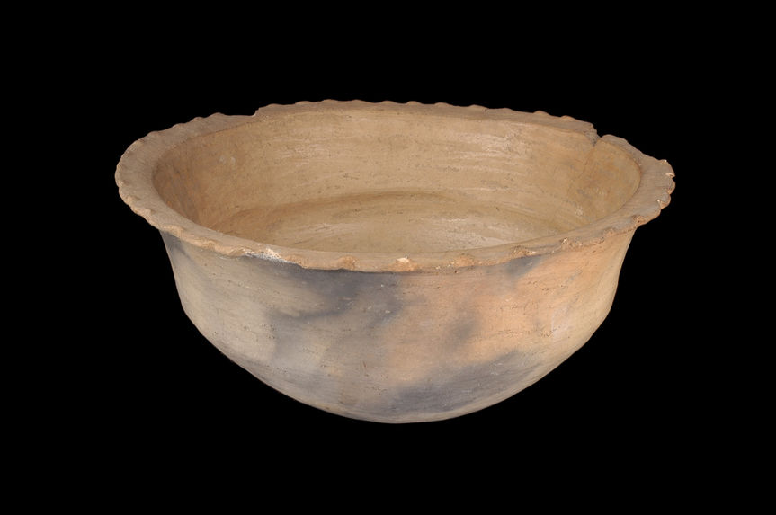 Terracota. Feito com uma bobina. O alisamento foi provavelmente feito durante o processo de secagem, já que a argila não é muito plástica (traços visíveis no exterior).
