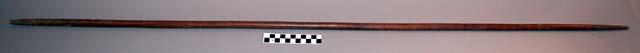 Vareta Bastão usado pelos Munduruku para transportar cabeça mumificada Acessar item no Acervo do museu de origemDocumentação Em “Termos de Uso”, disponíveis em (https://www.peabody.harvard.edu/node/778) explicita-se que o website é mantido pelo Peabody Museum of Archaeology and Ethnology, da Universidade de Harvard, que pode alterá-los a qualquer momento sem aviso prévio. O uso do website deve estar em concordância com: 1. O Site e grande parte do texto, imagens, gráficos, clipes de áudio e vídeo, informações e outros conteúdos do Site (coletivamente, o “Conteúdo”) são protegidos por direitos autorais, marcas registradas e outras leis. 2. O Conteúdo é disponibilizado somente para seu uso pessoal limitado, não comercial para fins educacionais ou acadêmicos, ou para outro uso justo na extensão permitida pela lei de direitos autorais dos Estados Unidos. A menos que especificado de outra forma no Site, você pode empregar as funções normais de seu navegador para baixar e imprimir uma única cópia de arquivos de Conteúdo individuais para tal uso, desde que você mantenha todos os direitos autorais e outros avisos de propriedade associados ao Conteúdo. Você deve citar o autor/artista e a fonte do Conteúdo como se fosse conteúdo de qualquer trabalho impresso, e a citação deve incluir a URL www.peabody.harvard.edu; 3. Concedem a permissão limitada acima sob os direitos autorais que possuem. Os direitos autorais e outros direitos sobre o Conteúdo também podem ser detidos por outros indivíduos ou entidades, incluindo artistas e outros detentores de direitos sobre as coleções do Museu Peabody reproduzidas no Site; 4. Usos Proibidos. É proibido copiar, exibir, publicar, distribuir, transmitir, modificar, executar ou utilizar ou explorar qualquer Conteúdo protegido no Site para qualquer propósito comercial ou com o propósito de torná-lo publicamente disponível. É proibido incluir qualquer Conteúdo protegido em um banco de dados, website ou recurso eletrônico, e de fazer qualquer outro uso do Conteúdo protegido que não seja expressamente permitido pela Seção 2; 5. Para solicitar permissão, sob direitos controlados por nós, para qualquer uso de outra forma proibido, favor entrar em contato com o Peabody Museum of Archaeology and Ethnology’s Office of Rights and ReproductionsPovo Indígena Munduruku Autodenominação: Wuyjuyu Outros nomes para o povo: Mundrucû Localização: Amazonas (AM)America do SulBrasilPará (PA)Museu Peabody Museum (Cambridge, EUA) Localização: América do NorteCambridgeEstados Unidos Número de tombo: 73-9-30/7412 Número anterior: 73-9-30/7412Características Dimensões: 124 x 1,5 x 1,5 cm 48 13,16 x 9,16 x 9,16 cm Quantidade de componentes: 1 Material/Suporte: MadeiraTesauro (FUNAI) Artefatos: Bastao CerimonialEquipamento mágico-ritual Matérias Primas: MadeiraProduto de origem VegetalProveniência Coleta: América do Sul, BrasilHistórico Cedente: Museu Peabody Coletor:Dr Charles Frederick Hartt Forma de Aquisição: : Selecione Exportar ObraBastão usado pelos Munduruku para transportar cabeça mumificada