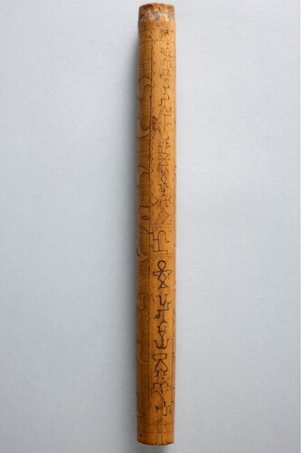 Material/Suporte: Cana de bambu gravada