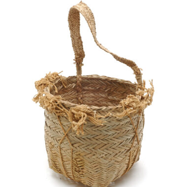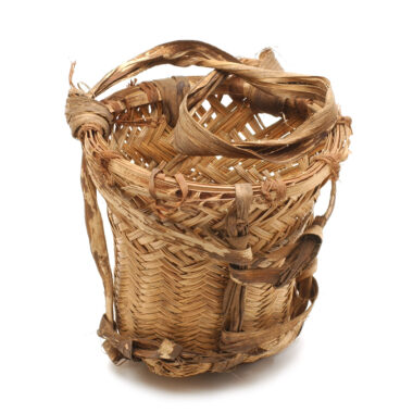 Cesto tecido em folha de palmeira bacaba ron’ô “, munido de uma tira de casca de aprox. A abertura alarga-se ligeiramente. Peça feita por homem e quase exclusivamente utilizada por mulheres. Este tipo é menos feito como o nº 40786”