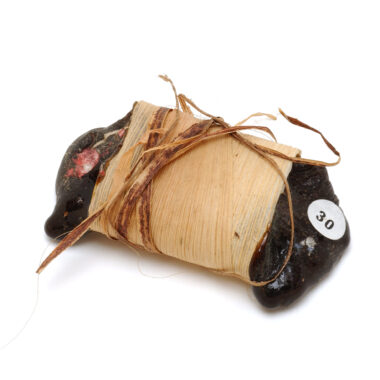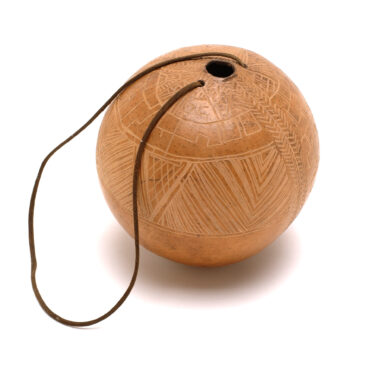 Objeto tecido com fibras de palmeira de Buriti (ngrwa’ô “) e munido de uma tira suspensa do mesmo material. Peça feita por mulheres e usada quase exclusivamente por mulheres como recipiente para sementes secas de urucum ou babaçu. O objeto é suspensos na moldura da casa “” 2 pingentes de algodão (“kadjàt”) dispostos nos ângulos …